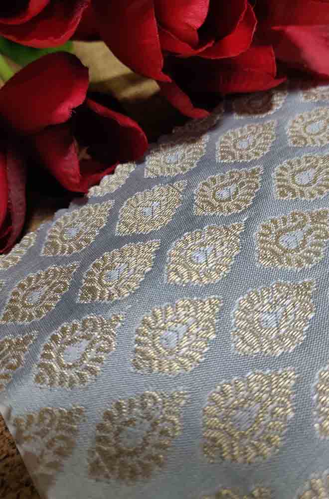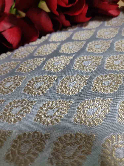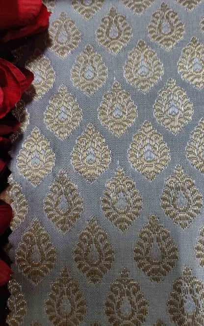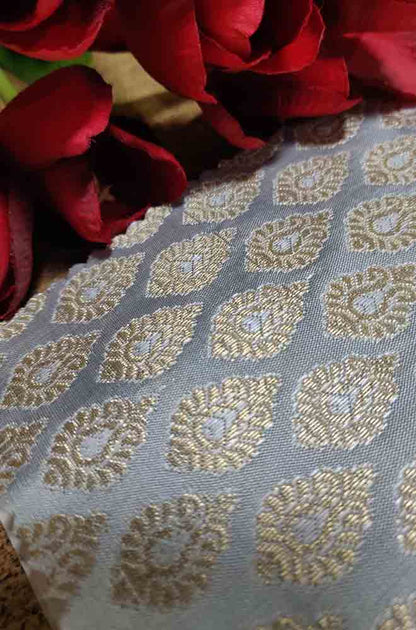 Grey Banarasi Silk Fabric ( 1 Mtr )