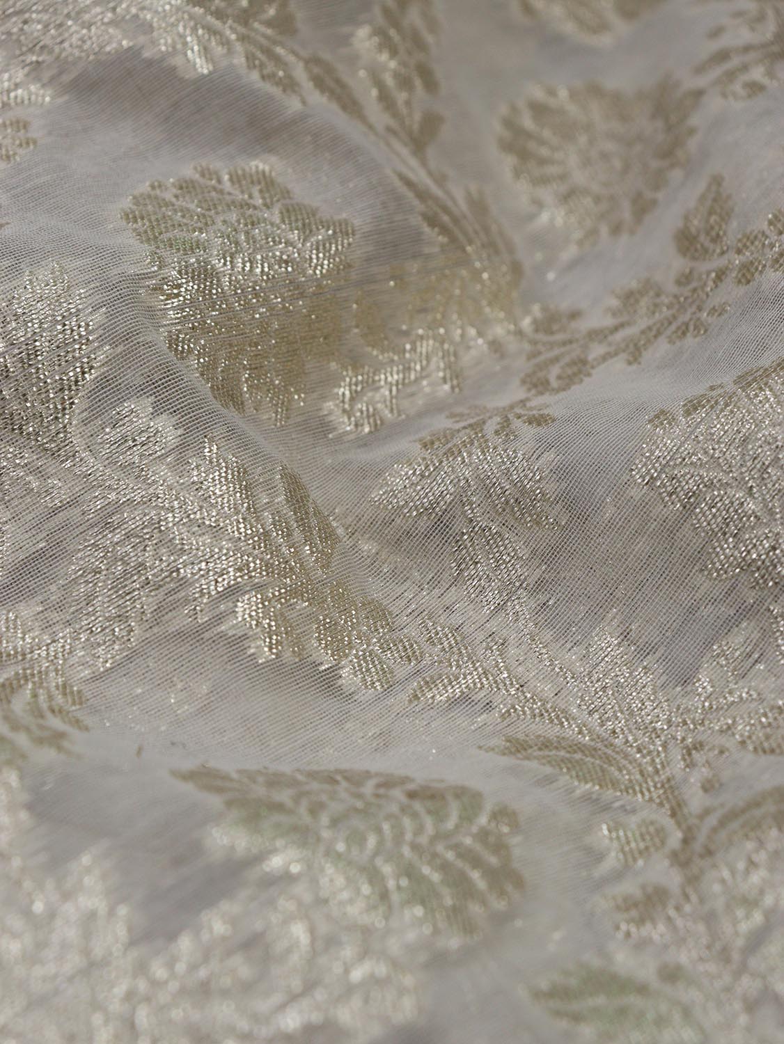 Introducing the exquisite Dyeable Banarasi Chanderi Silk Fabric (1 Mtr) - a luxurious fabric that is perfect for creating stunning ethnic wear. This fabric is made from a blend of silk and cotton, which gives it a soft and comfortable feel. The fabric is lightweight and has a beautiful sheen that adds to its elegance. The fabric is perfect for creating sarees, salwar suits, lehengas, and other traditional wear.