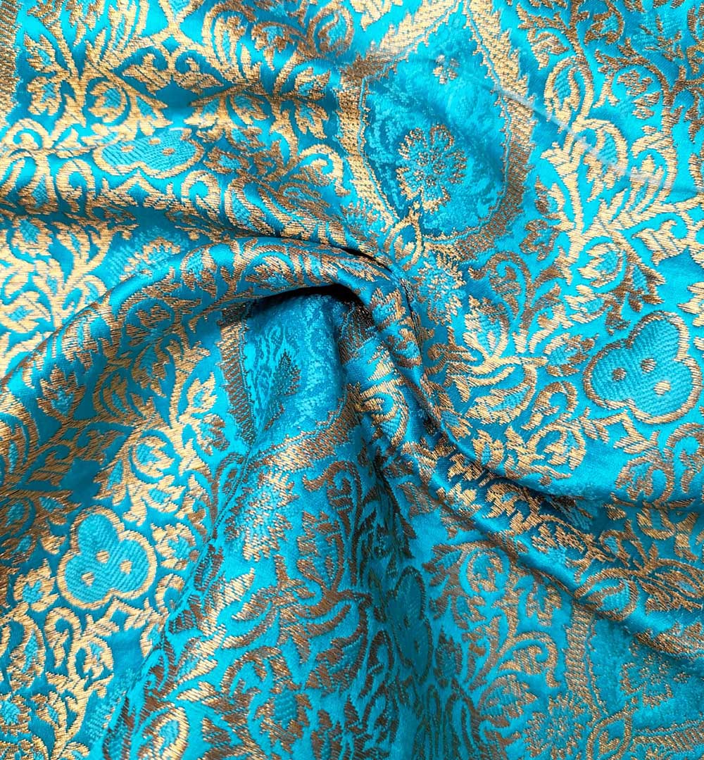 Blue Banarasi Silk Fabric ( 1 Mtr )