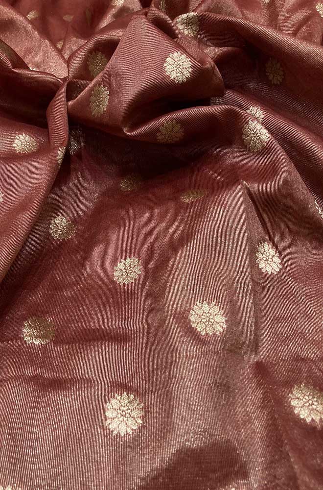 FABRIC: Tissue Silk is an Organza type of fabric. It has an open weave with coloured silk woven in one direction and metallic thread in the other. This gives a shot effect when used flat. Silk Tissue can be totally transformed by scrunching a piece in water.Tissue as a material is light and easy to carry.