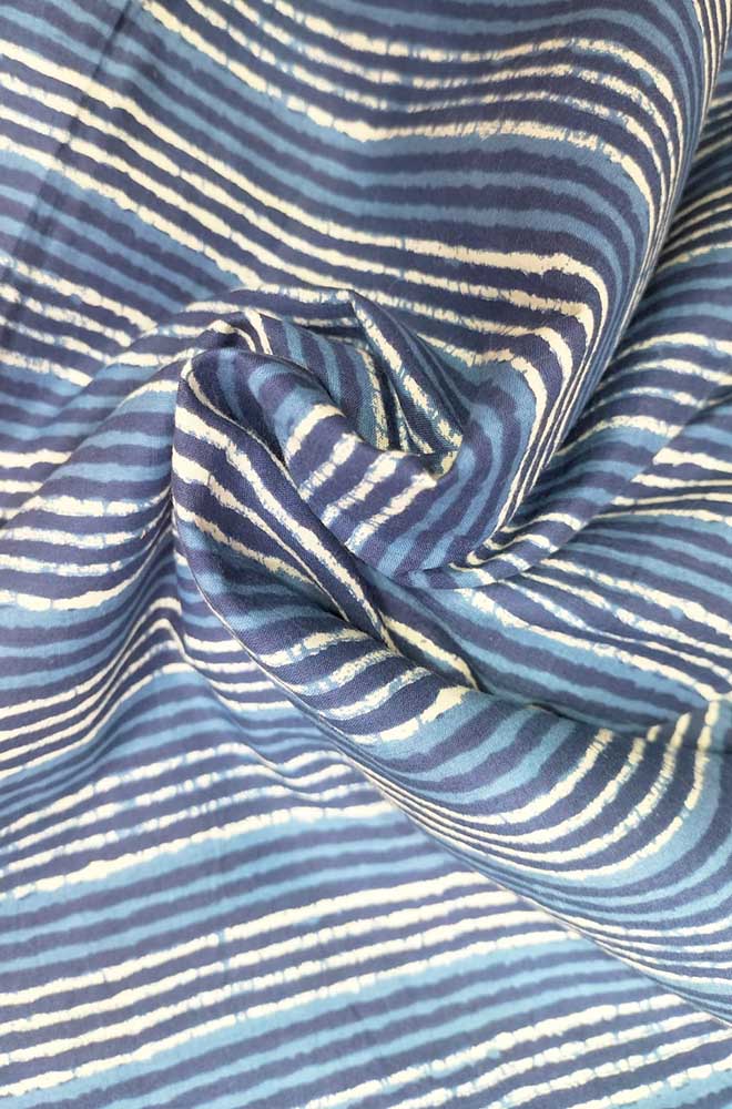 Blue Indigo Block Printed Pure Cotton Fabric ( 1 Mtr )