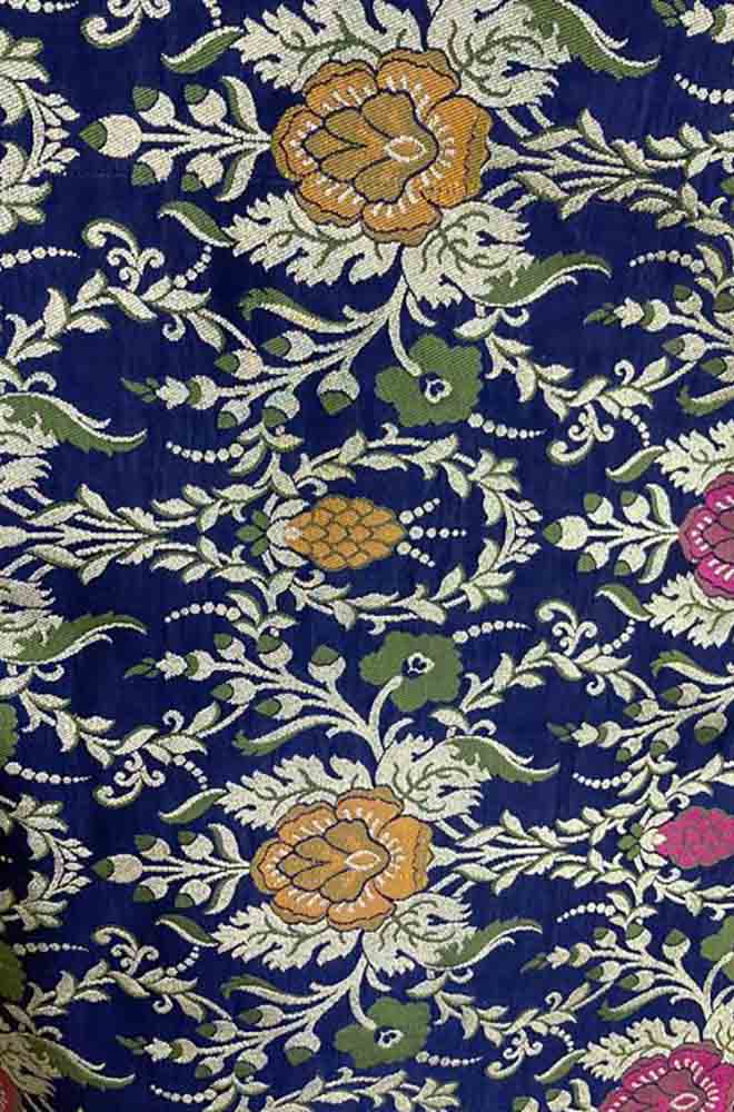 Blue Banarasi KimKhwab Silk Meenakari Fabric ( 1 Mtr )