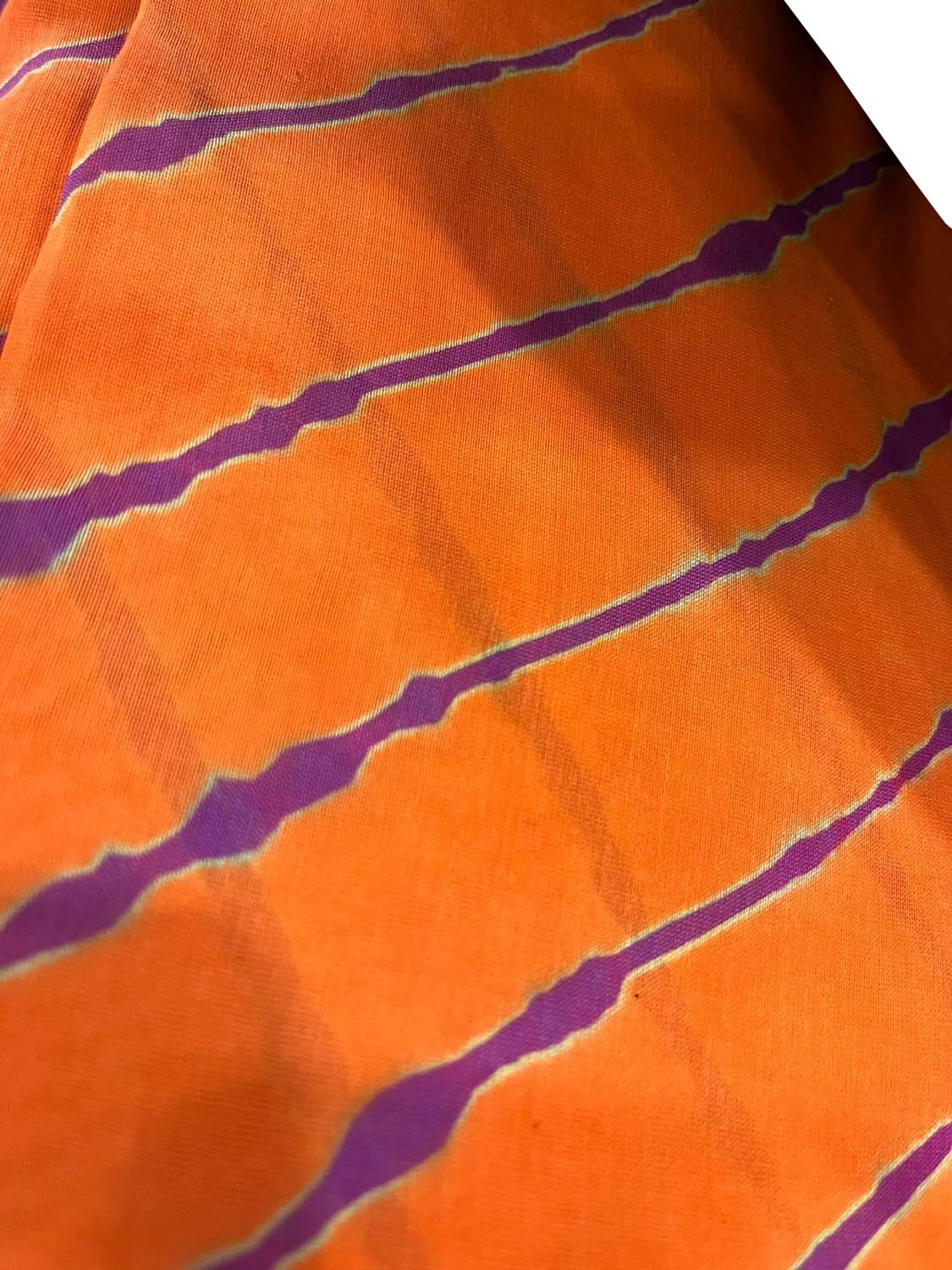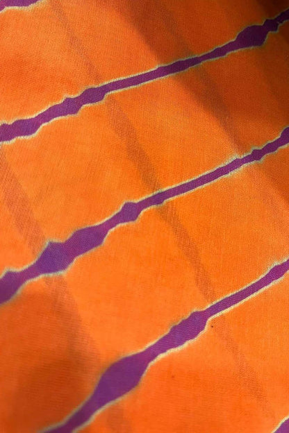 Leheriya Tie and Dye Pure Chanderi Silk fabric is a testament to timeless artistry and opulence. Meticulously woven from the finest Chanderi silk, prized for its airy texture and translucence, this fabric showcases the traditional Leheriya tie-dye technique. Expert artisans skillfully produce intricate, undulating patterns in a rich array of hues, resulting in a mesmerizing, wave-like design. This fabric epitomizes sophistication and cultural heritage, making it perfect for crafting exquisite Indian ensembles like sarees, salwar kameez, and dupattas. Its featherweight, breathable nature ensures comfort, while the vibrant, handcrafted motifs pay homage to Rajasthan's artistic traditions, making it an exquisite choice for timeless, traditional attire.