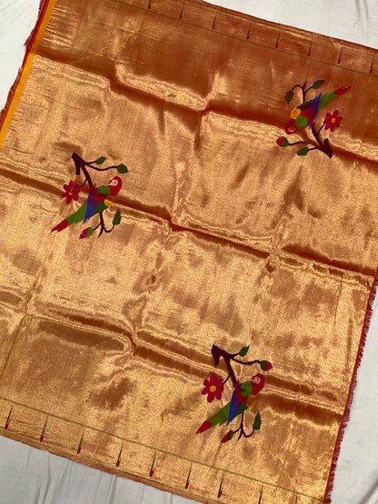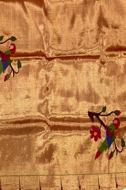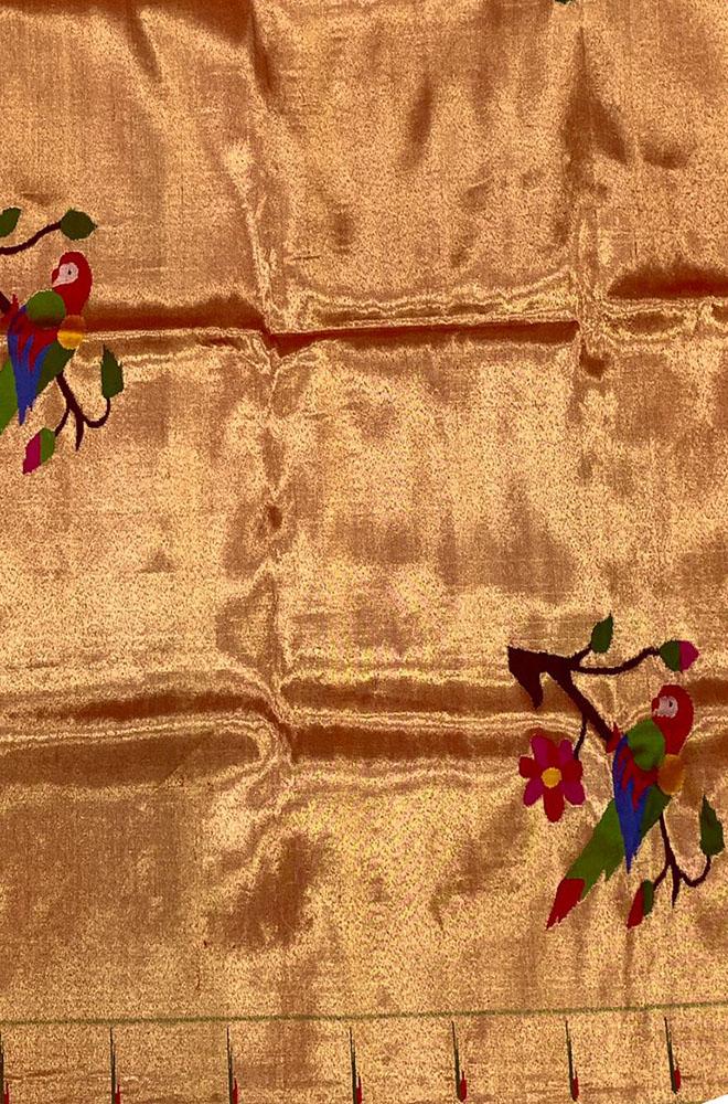 Golden Handloom Paithani Pure Silk Blouse Piece Fabric ( 1 Mtr )