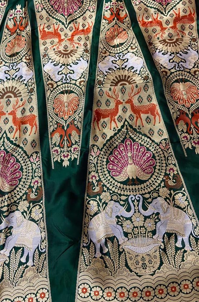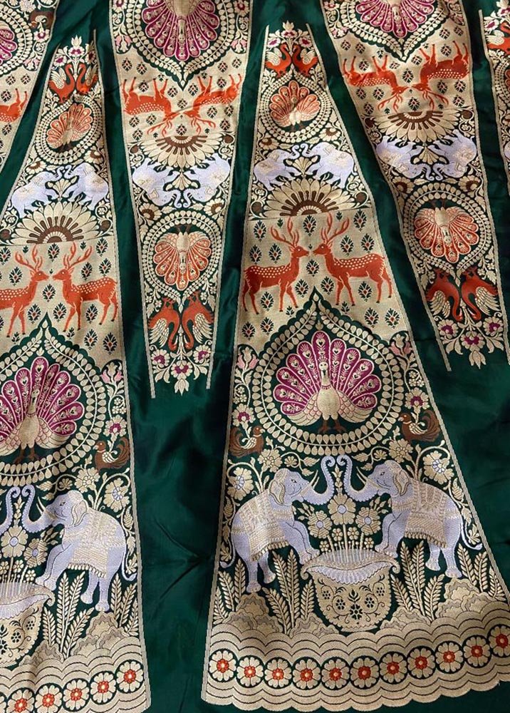 From our exclusive collection of Banarasi Craftsmen, this is a Handloom Banarasi Katan Silk Lehenga Set which you would love to have it in your wardrobe. Get Simplicity and elegance in this handloom lehenga that is classic and stands the test of time. It comes with a 1 Mtr blouse piece Fabric and dupatta border not the whole dupatta. It comes with 15 kallis.