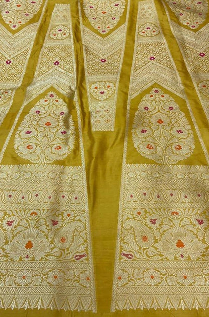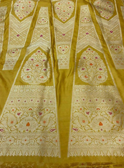 From our exclusive collection of Banarasi Craftsmen, this is a Handloom Banarasi Katan Silk Lehenga Set which you would love to have it in your wardrobe. Get Simplicity and elegance in this handloom lehenga that is classic and stands the test of time. It comes with a 1 Mtr blouse piece Fabric and dupatta border not the whole dupatta. It comes with 18 kallis.