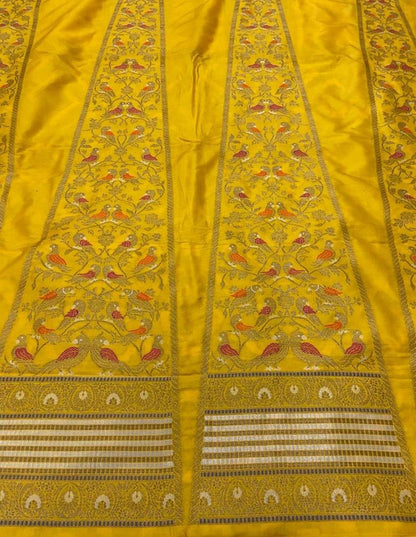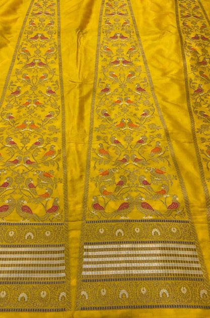 From our exclusive collection of Banarasi Craftsmen, this is a Handloom Banarasi Katan Silk Lehenga Set which you would love to have it in your wardrobe. Get Simplicity and elegance in this handloom lehenga that is classic and stands the test of time. It comes with a 1 Mtr blouse piece Fabric and dupatta border not the whole dupatta. It comes with 16 kallis.