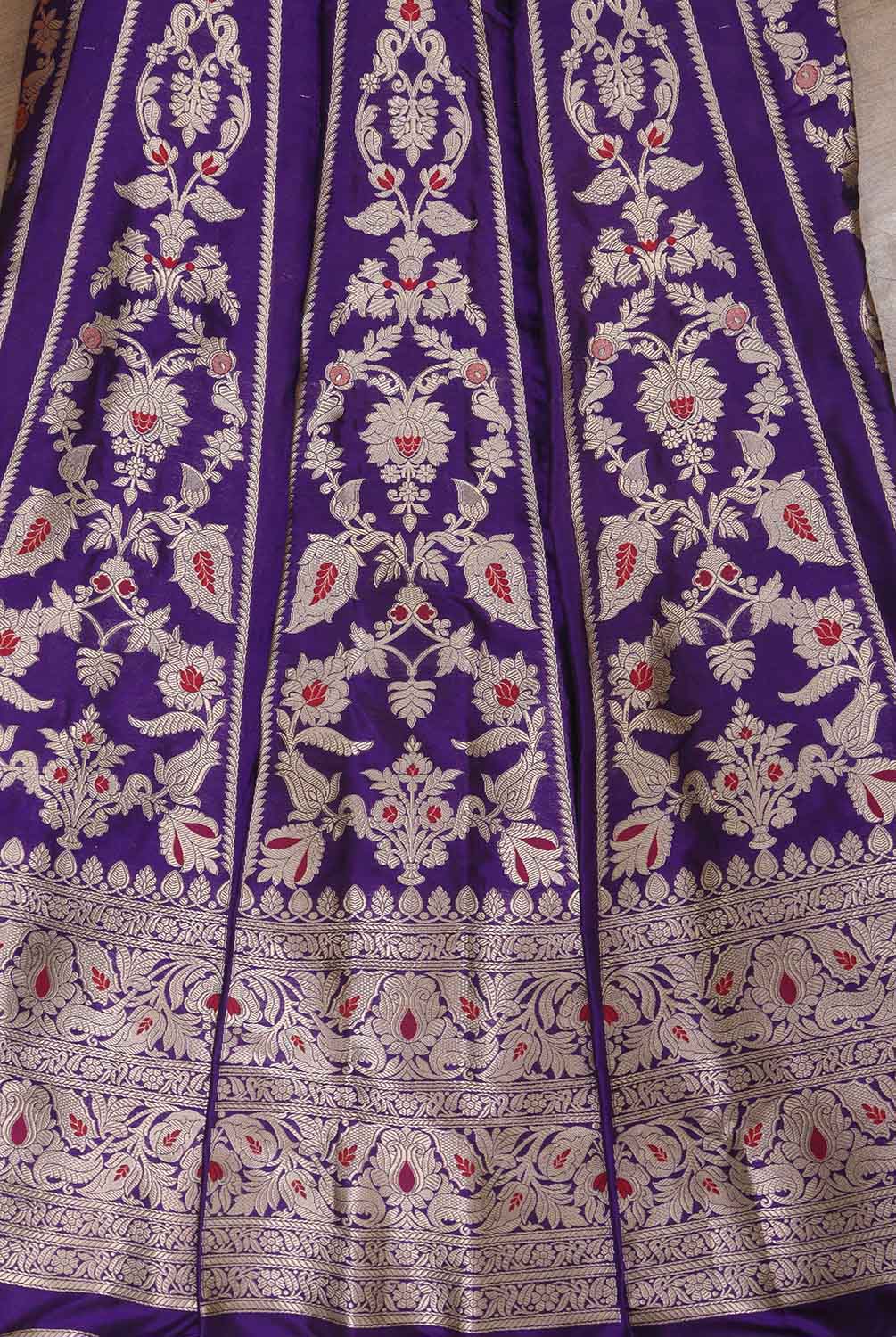 Whether you're attending a wedding or a festival, the Purple Banarasi Pure Katan Silk Unstitched Lehenga Set is sure to make you stand out. Its intricate Banarasi weaving and high-quality pure katan silk material make it a timeless piece that you can wear for years to come.