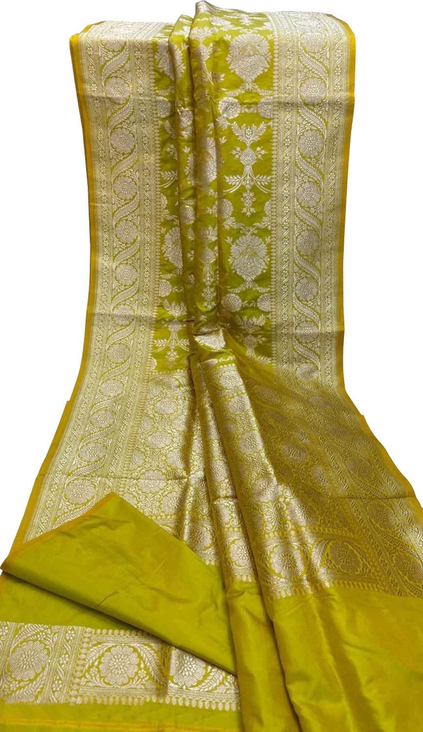 "When you think of occasion wear, festive wear, special dressing, you think of dressing, you think of banarasi; such is the flavour and flamboyance of these sarees. Known for their gold and silver zari, fine silk and opulent embroidery, they are heavy sarees with inspired designs. Made in Varanasi, they are characteristsed by intricate intertwining floral and foliate motifs, kalga and bel and a string of upright leaves at the outer edge of border. These sarees in addition to its beauty manages to evoke a feeling of nostalgia for every woman. It reminds one of their mothers, aunt and grandmothers donned in banarasis on very special occasions. Managing to garner appreciation since so many generations and being favourite till today is an exceptional feat by the artisans and Banarsai saree. Come; let us renew our special bond with these sarees only from the treasure trove of Banarasi saree at Luxurion World.