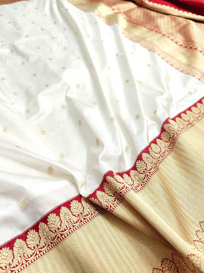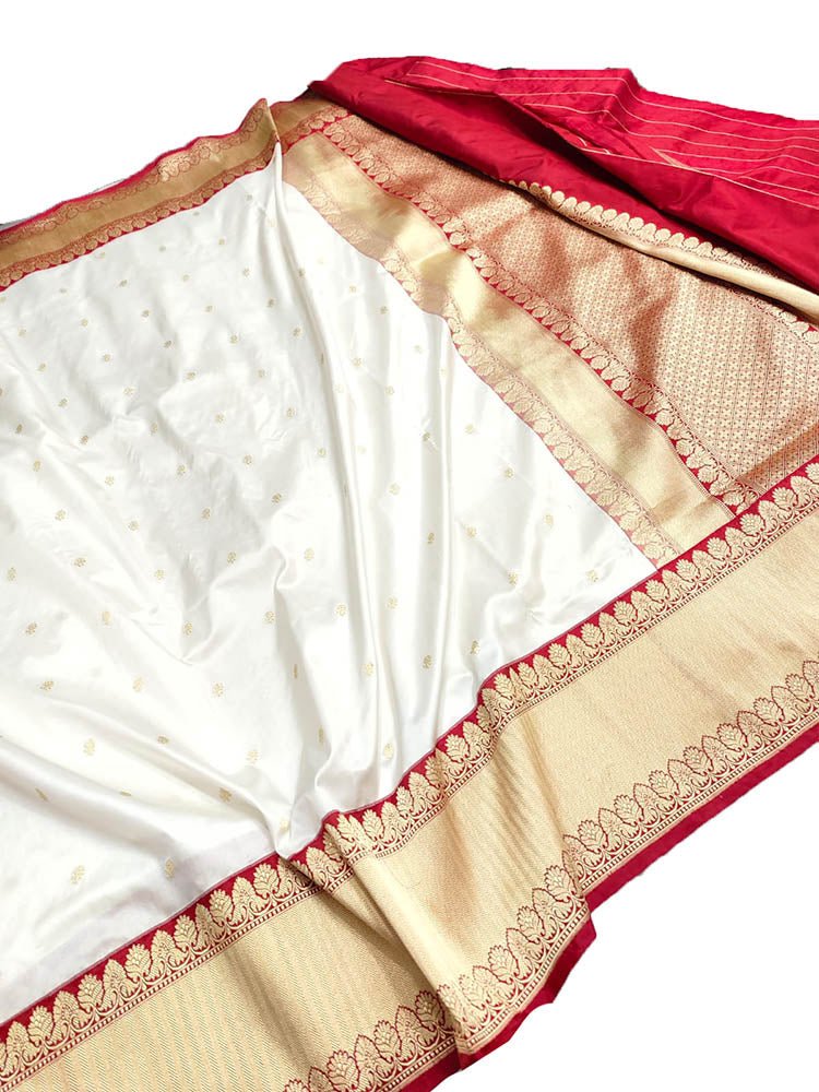 "When you think of occasion wear, festive wear, special dressing, you think of dressing, you think of banarasi; such is the flavour and flamboyance of these sarees. Known for their gold and silver zari, fine silk and opulent embroidery, they are heavy sarees with inspired designs. Made in Varanasi, they are characteristsed by intricate intertwining floral and foliate motifs, kalga and bel and a string of upright leaves at the outer edge of border. These sarees in addition to its beauty manages to evoke a feeling of nostalgia for every woman. It reminds one of their mothers, aunt and grandmothers donned in banarasis on very special occasions. Managing to garner appreciation since so many generations and being favourite till today is an exceptional feat by the artisans and Banarasi saree. Come; let us renew our special bond with these sarees only from the treasure trove of Banarasi saree at Luxurion World.
