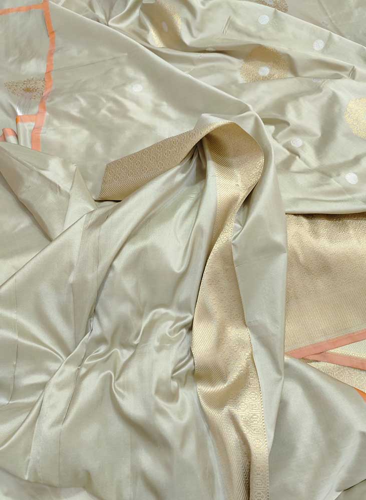 FABRIC: "• Katan is a plain-woven fabric with pure silk threads.