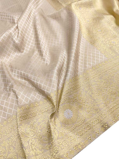 FABRIC: Katan Silk is one of the finest varieties of Silk. It is created by twisting 2-filaments together to create a sturdier and more durable fabric. Due to the nature of its creation, it also makes an interesting textured background for any work that is to be done on the fabric to make it unique. It is known for its versatility, softness and comfort. It can be weakened by sunlight and perspiration..