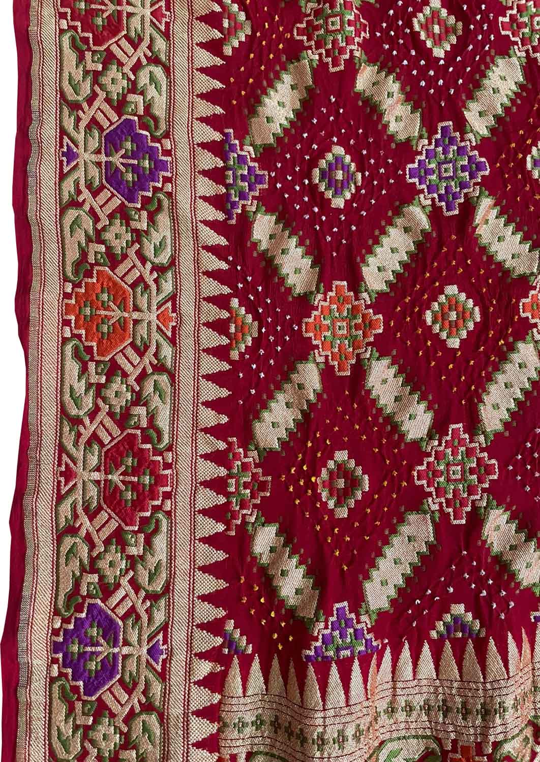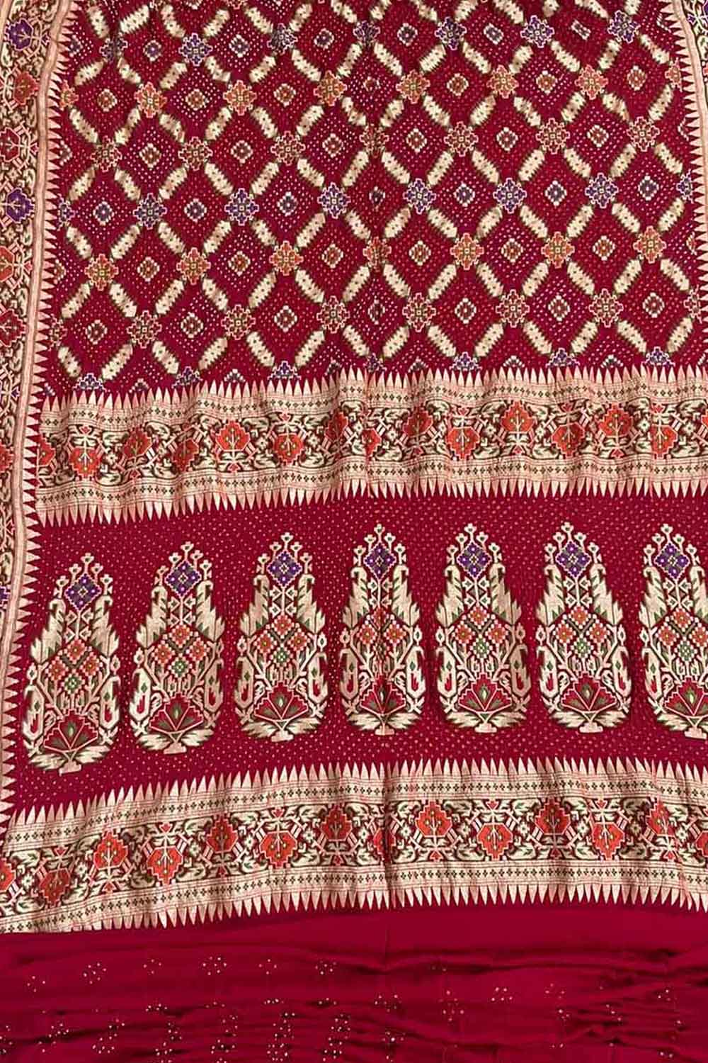 This is a Bandhani Georgette Saree - an ideal party wear. The art of Bandhani is a highly skilled process. The technique involves dyeing a fabric, which is tied tightly with a thread at several points, thus producing variety of patterns like Leheriya, Mothra, Ekdali and Shikari depending on the manner in which the cloth is tied. Bandhani work, after the processing is over, results into a variety of symbols including, dots, squares, waves and strips. A meter length of cloth can have thousands of tiny knots .These knots form a design once opened after dyeing in bright colors.
