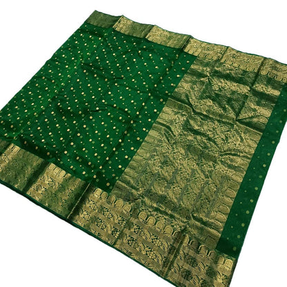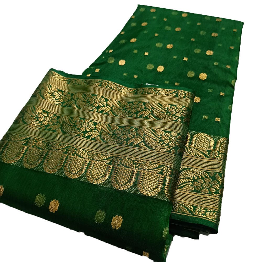 - 1. High-Quality Silk: The Green Handloom Chanderi Pure Katan Silk Saree is made from high-quality silk that is soft, comfortable, and durable.
