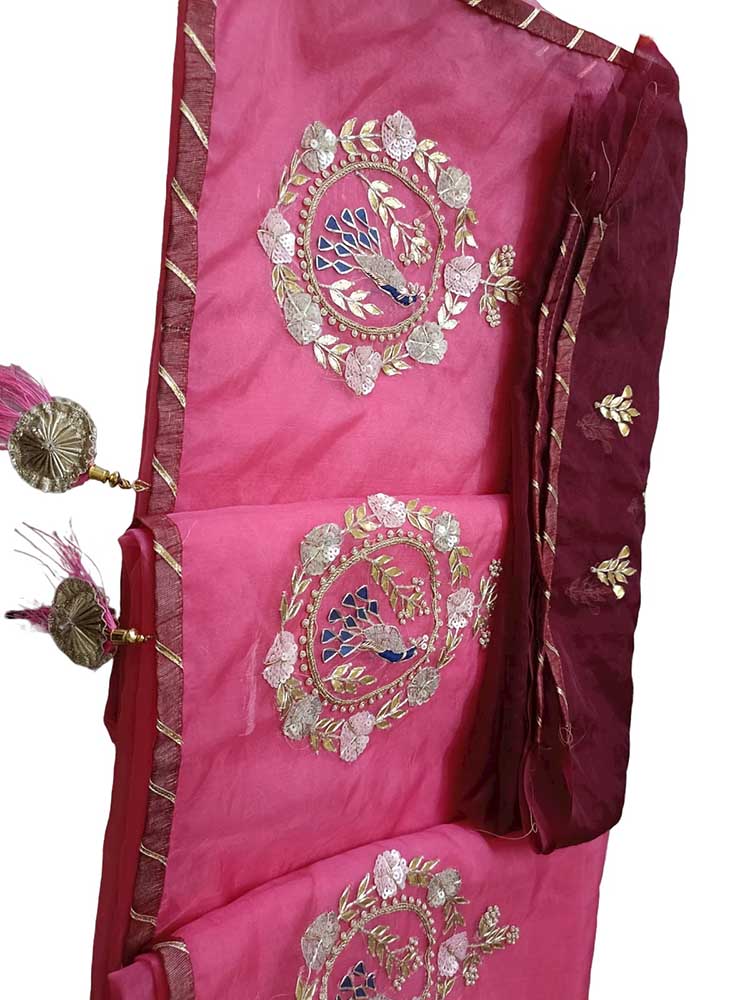"• Originating in Rajasthan Gota Patti work is also known as 'Aari Tari' or 'Zardozi'