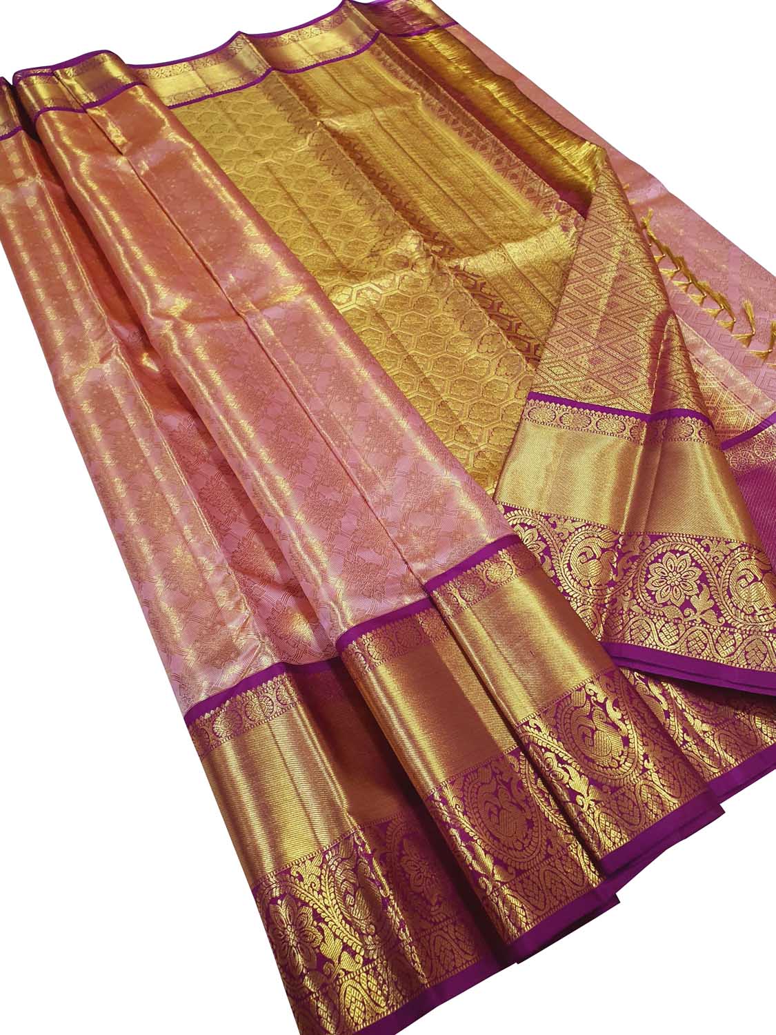 • Widely known as the queen of silks. Rich and lustrous fabric with deep colors mixed with hints of gold.