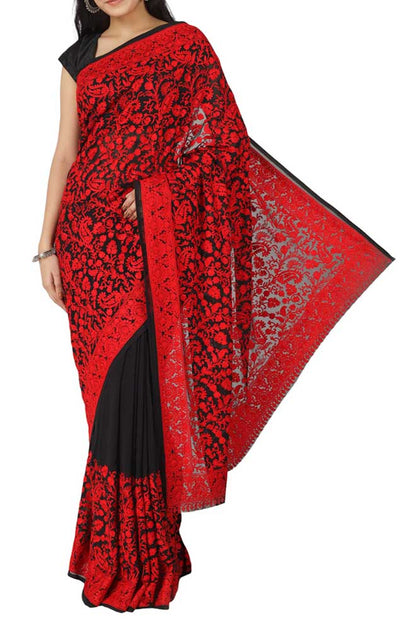 The beauty of Kashmir is not confined to its landscape. It extends to the beauty exhibited by myriad forms of its art work that brings about a delightful mold in fabric and garments. Kashmiri embroidery holds fantasy for women since time eternal. Aari work Sarees are exemplary in its own class by their sheer delicate nature of embroidered patterns.