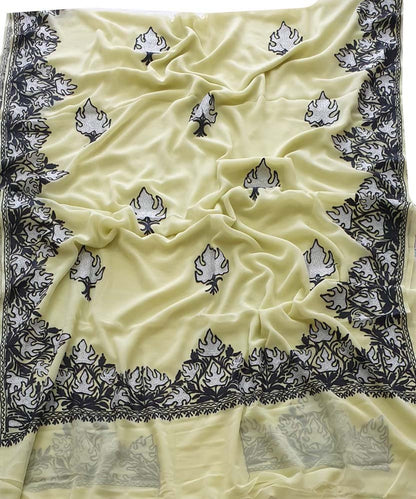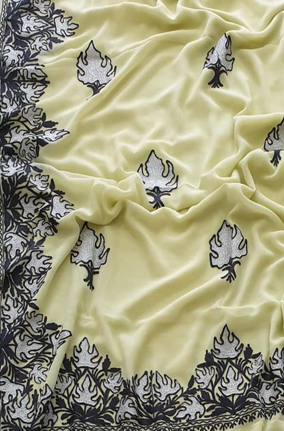 Yellow Embroidered Kashmiri Aari Work Georgette Saree