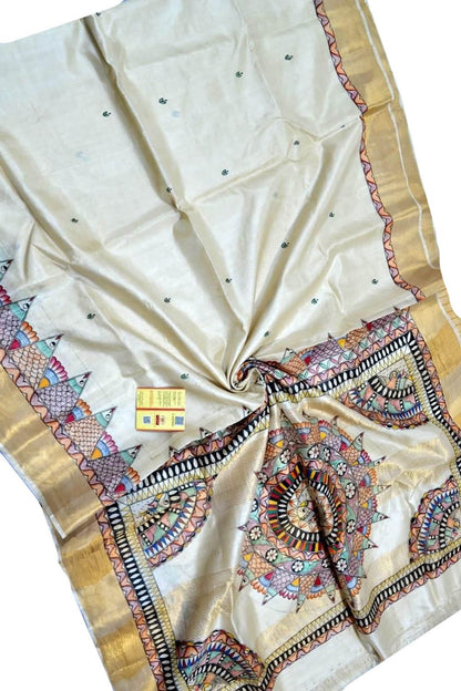 Pastel Hand Painted Madhubani Tussar Silk Saree
