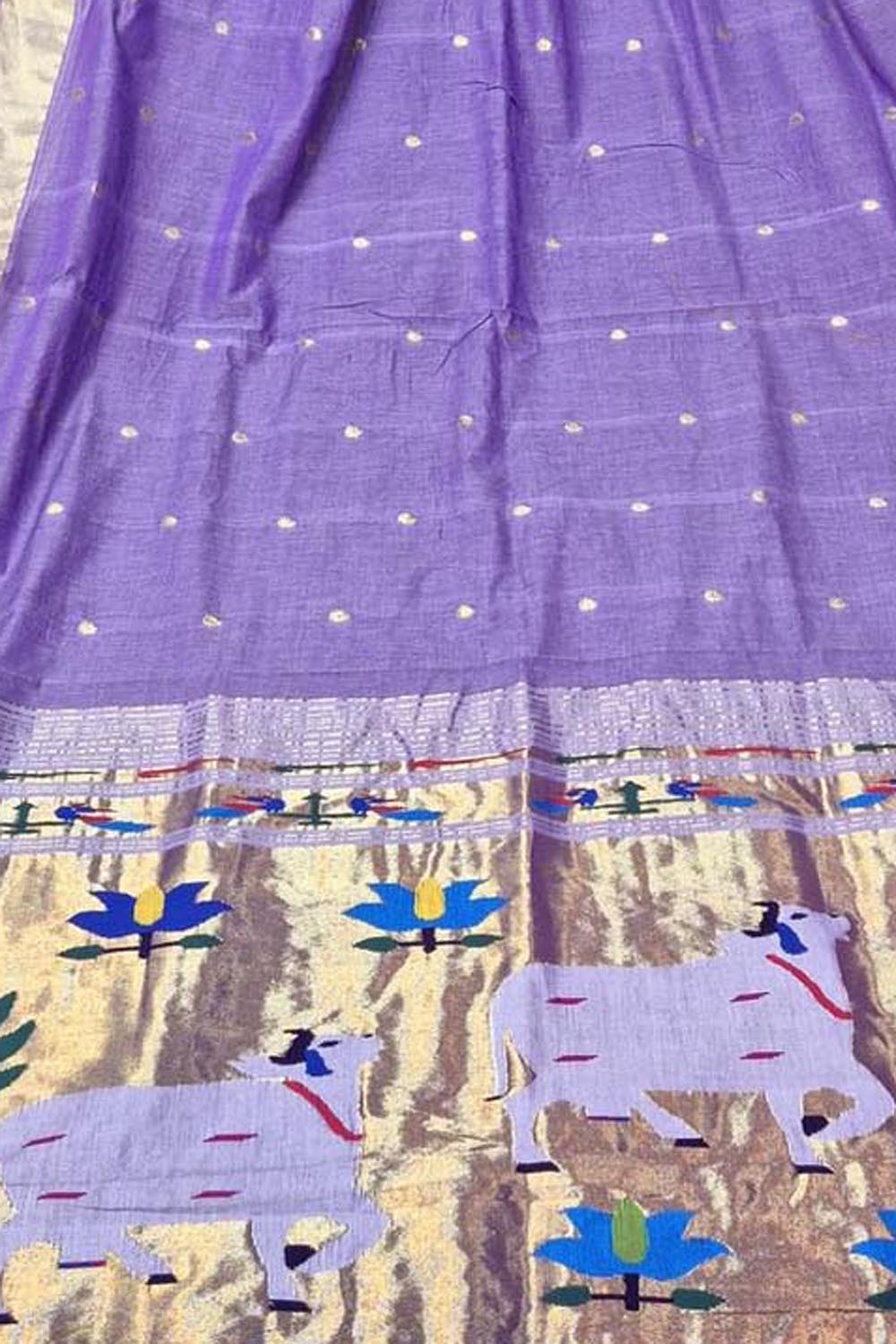 The Exquisite Purple Paithani Handloom Cotton Saree is a stunning piece of traditional Indian attire that exudes elegance and grace. Made from high-quality handloom cotton, this saree features intricate purple and gold weaving that showcases the rich heritage of Paithani craftsmanship. The lightweight and breathable fabric make it perfect for all-day wear, while the vibrant colors and intricate designs make it a standout piece for any special occasion. The saree comes with a matching blouse piece that can be tailored to your measurements for a perfect fit. Add this exquisite saree to your collection and make a statement at your next event.