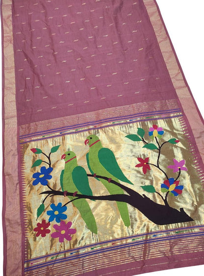 This is a Paithani Cotton Saree, which you would love to have it in your wardrobe. This Saree is a perfect occasion wear. This saree is the result of a painstakingly complex process of weaving & dyeing.