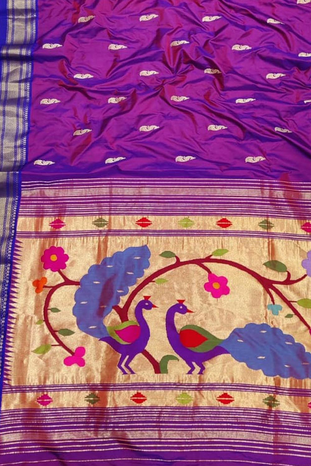 If you are looking for a traditional Indian saree that is both beautiful and high-quality, then the Purple Paithani Handloom Pure Silk Saree is the perfect choice for you. With its stunning design and superior craftsmanship, this saree is sure to make you feel like a queen on your special day.