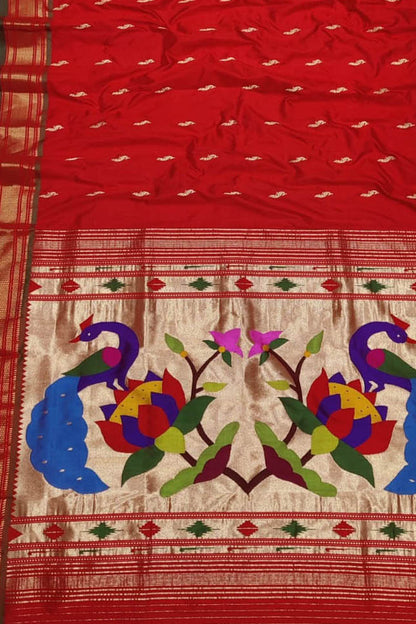 Overall, the Red Paithani Handloom Pure Silk Saree is a must-have for anyone who wants to add a touch of traditional elegance to their wardrobe. Its unique design, high-quality silk, and rich color make it a timeless piece that you will cherish for years to come.