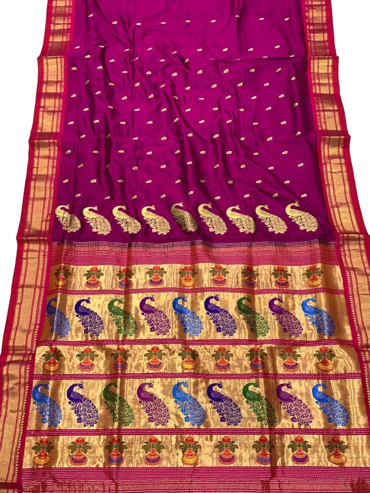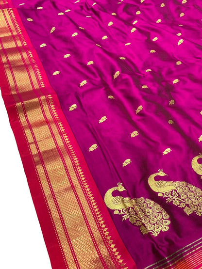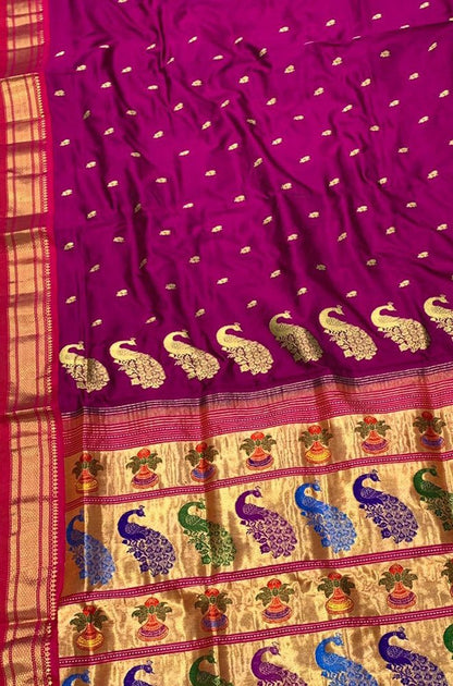 Purple Handloom Paithani Pure Silk Saree