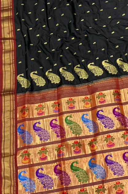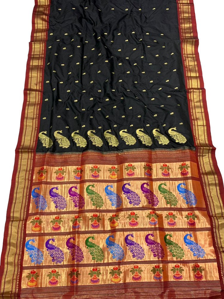 Black Handloom Paithani Pure Silk Saree