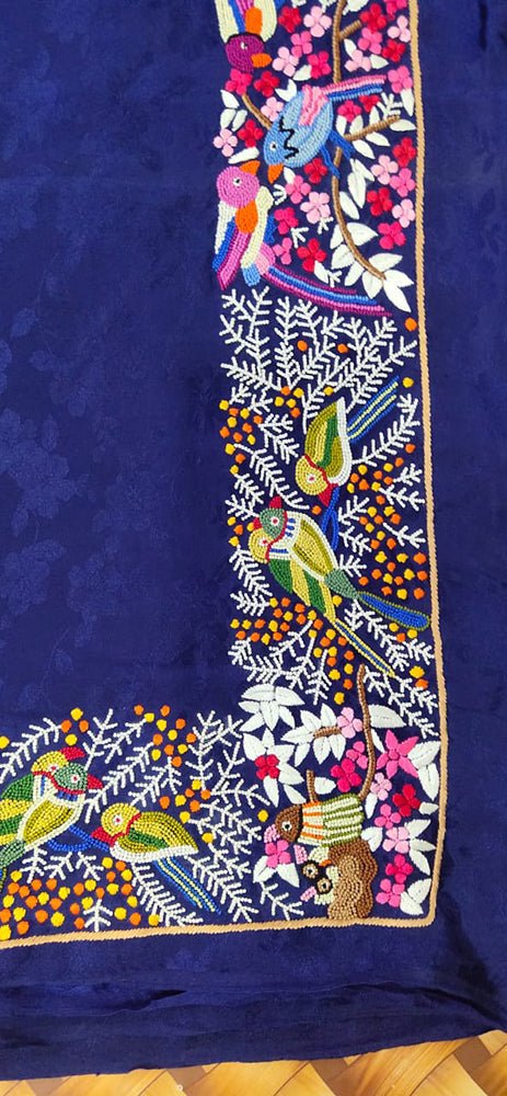 Parsi Embroidery is an aesthetic composition of pictorial traditions and an emblem of elegance. Combining the beauty inherent in four cultural traditions – Persian, Chinese, Indian and European – this exquisite textile form is truly an intercultural craft. .The Parsi Sarees are indeed worth a treasure. Parsi sarees are comparatively more costly but their appeal and style are so immensely enchanting that it overcomes all the hurdle of price tag for an avid buyer. Since it is the hand embroidery, one of the most prized possessions of a Parsi woman is their Parsi embroidered clothes. Parsi embroidery incorporates motifs that have deep meanings. The reverence of the Parsis towards nature is evident in their embroidery work.