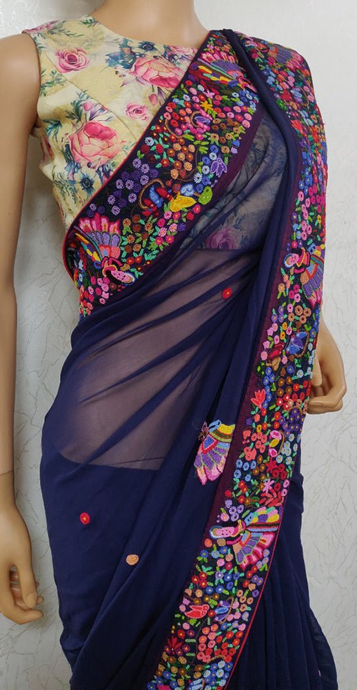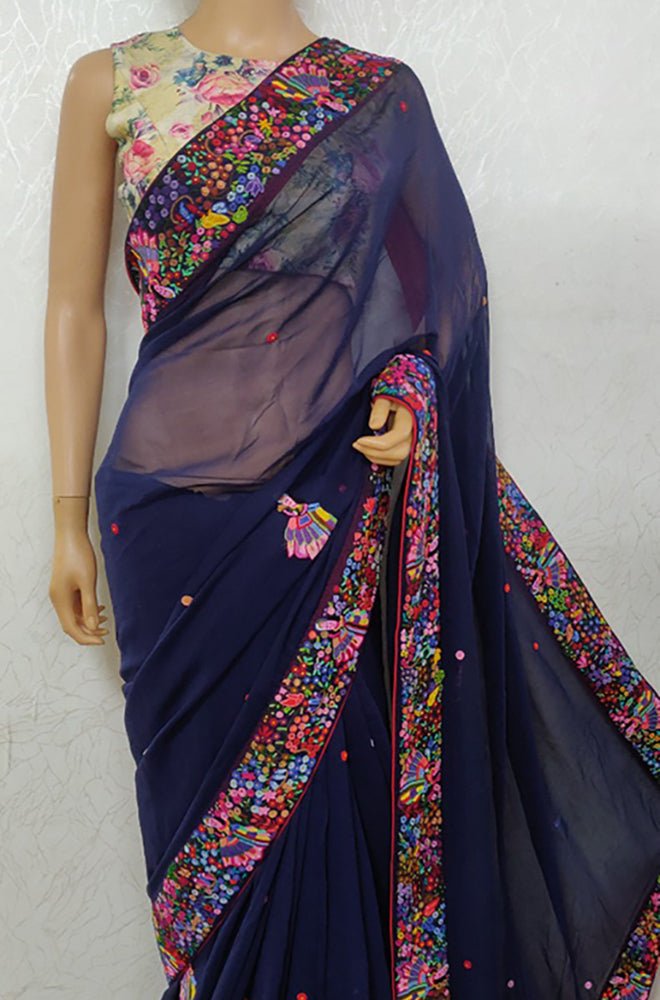 Parsi Embroidery is an aesthetic composition of pictorial traditions and an emblem of elegance. Combining the beauty inherent in four cultural traditions – Persian, Chinese, Indian and European – this exquisite textile form is truly an intercultural craft. .The Parsi Sarees are indeed worth a treasure. Parsi sarees are comparatively more costly but their appeal and style are so immensely enchanting that it overcomes all the hurdle of price tag for an avid buyer. Since it is the hand embroidery, one of the most prized possessions of a Parsi woman is their Parsi embroidered clothes. Parsi embroidery incorporates motifs that have deep meanings. The reverence of the Parsis towards nature is evident in their embroidery work.