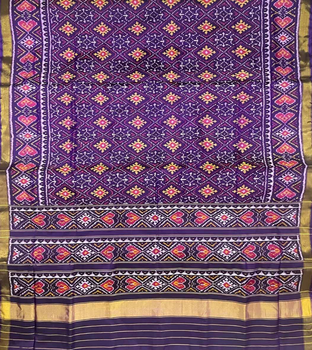 This Handloom Patola Saree is a single ikat saree. Single Ikat fabrics are created by the resist tie-dye method, with thread inter weaving of warp (lengthwise lay of thread) with plain weft (breadth wise thread weaving), or resisted weft yarns interspersed with plain weft. Patola means a Queen of Silks. The Patola Silk Sarees are one of the finest varieties of handloom silk saree from Gujarat. Patola sarees are woven with great clarity and precision. Each Patola saree reflects the skill and imagination of the weaver and is exclusive by nature.