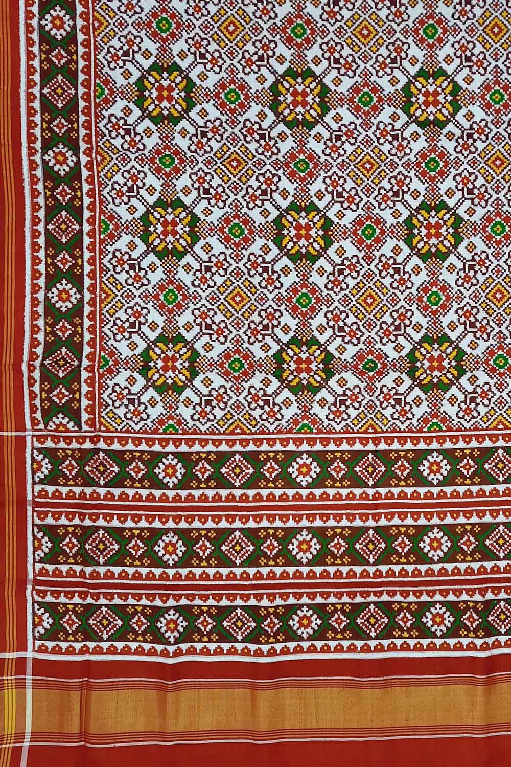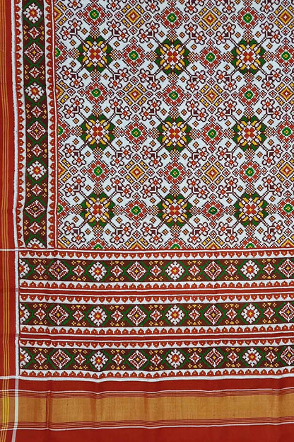 The making of Patan Patola sarees is extremely laborious and requires anywhere between five months to one year to create a single saree. Four to five family members work in unison, delicately weaving the unique creation. Another feature of these hand-dyed patolas which makes them stand out is that the feel and look of the fabric is exactly the same from both sides. This is due to the use of horizontal double-resist technique of dyeing in the process of colouring the fabric. The use of natural dyes makes it very eco-friendly, garnering even more applause for the technique. This Saree Does not Come with Blouse Piece. FABRIC: Pure Silk is widely regarded as the most luxurious textile on the planet. It is a natural fiber produced from the cocoons of mulberry silkworm via a process called Sericulture.Indian Silk fabrics are world famous for their exquisite colors and bold patterns. Pure silk is one of the finest varieties of Silk. It is created by twisting 2-filaments together to create a sturdier and more durable fabric. Due to the nature of its creation, it also makes an interesting textured background for any work that is to be done on the fabric to make it unique. NOTE: There may be a slight colour variation in the image from original product due to various reasons like configuration of computer monitor, colour scheme of computer, lighting of the photograph etc.