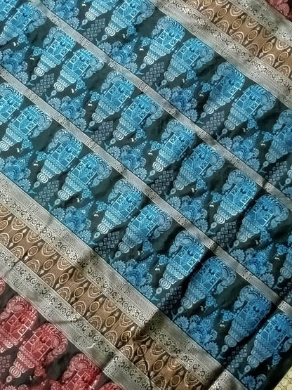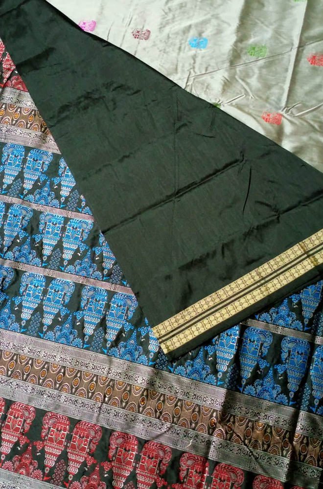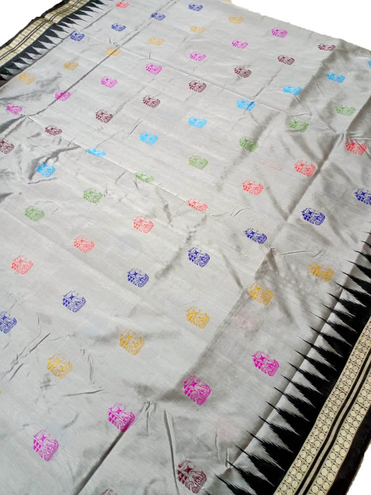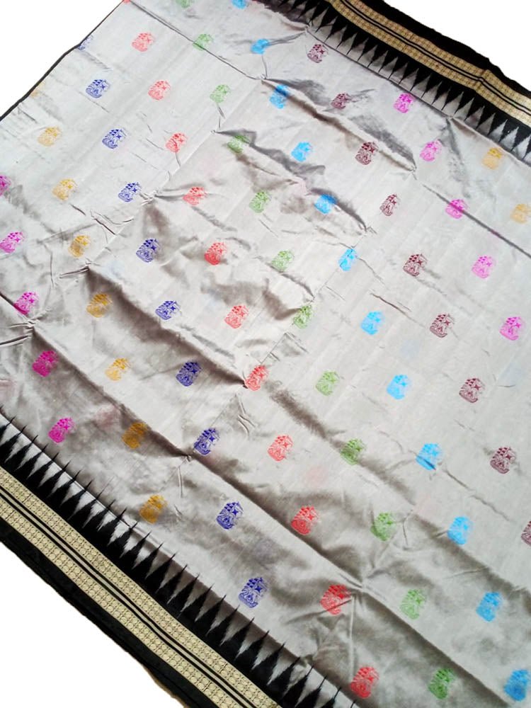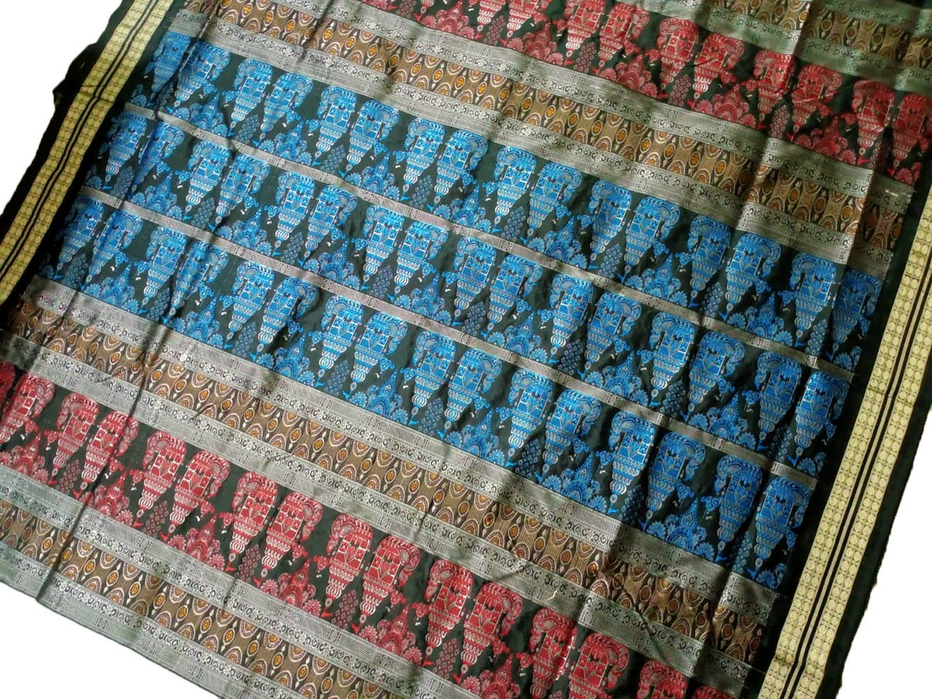 • Consists of meaningful designs from Odisha temples & uses double ikat weaving.