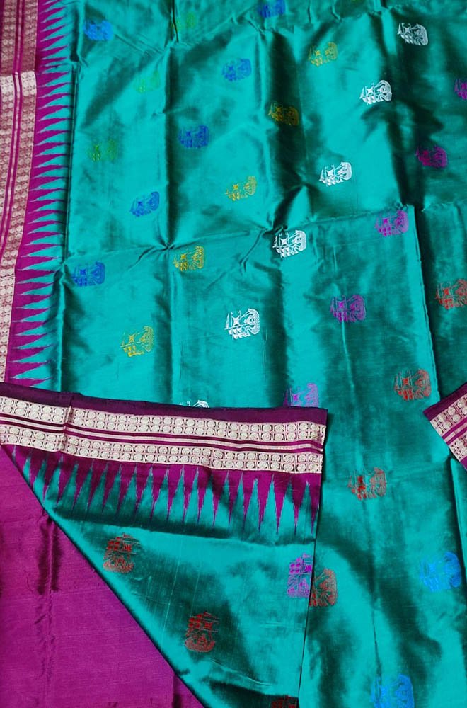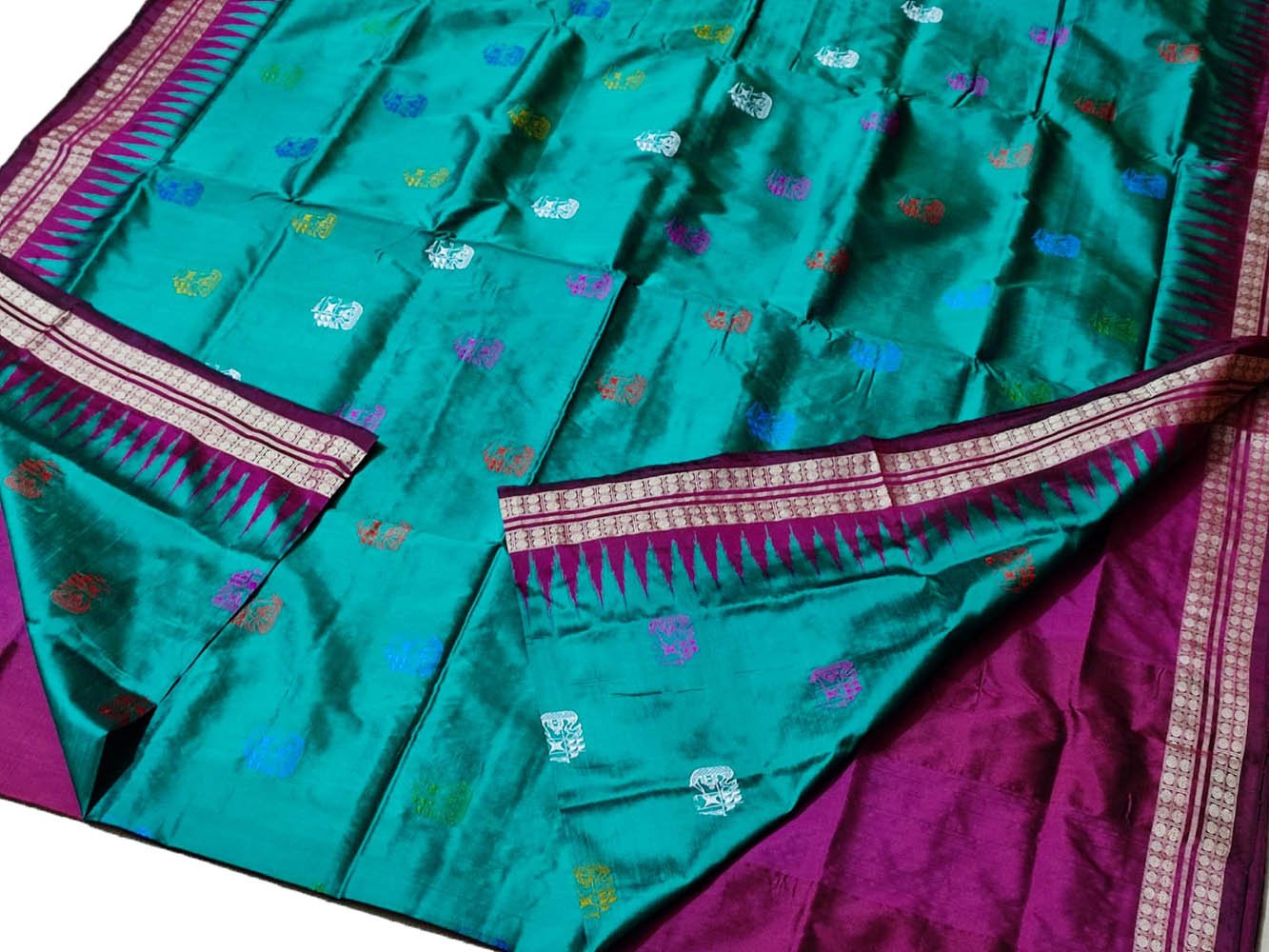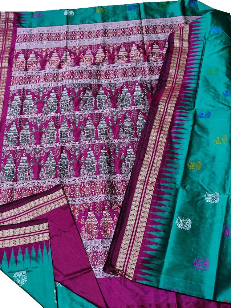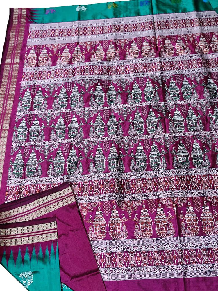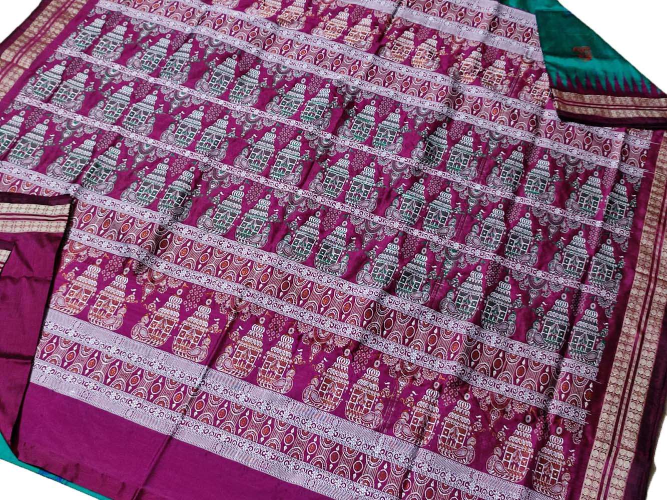 • Consists of meaningful designs from Odisha temples & uses double ikat weaving.