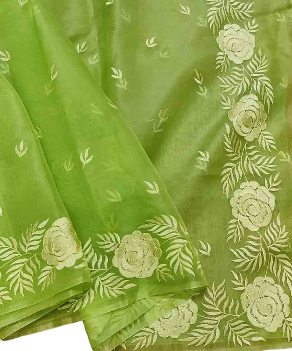 FABRIC: Organza Silk Sarees made from this fabric feel very light and are extremely comfortable to carry, at the same time they look really elegant. Organza silk is strong and durable with a firm hand and a flat smooth texture. The fabric of these Organza silk from has a natural stiffness to it without any application of starch or other stiffeners.
