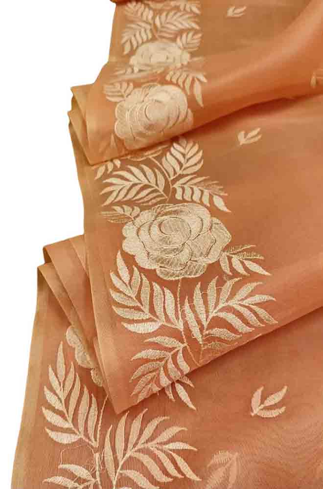 FABRIC: Organza Silk Sarees made from this fabric feel very light and are extremely comfortable to carry, at the same time they look really elegant. Organza silk is strong and durable with a firm hand and a flat smooth texture. The fabric of these Organza silk from has a natural stiffness to it without any application of starch or other stiffeners.