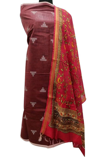 "The Bhagalpur Handloom Two Piece Suit is individually crafted to give a gorgeous look to Indian personality.This is a simple yet elegant looking Suit. It comes with a top, dupatta And No bottom.