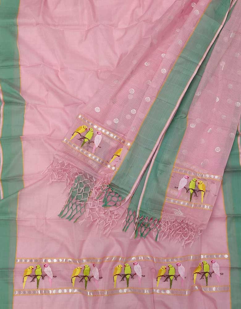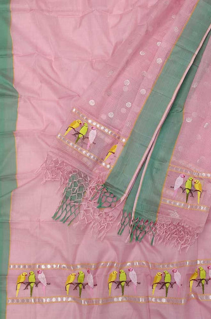 This is a comfort wear suit. Kota, a town situated in southern parts of Rajasthan, hosts several clusters which have been weaving delicate muslin saris and suits, called Kota Doria or Kota Masuria. The word ‘Dori’ literally translated from Hindi, means ‘threads’. This Suit is woven with real zari. It comes with Top and Dupatta No Bottom.