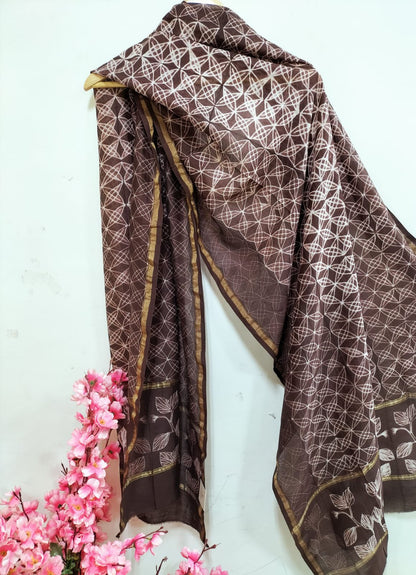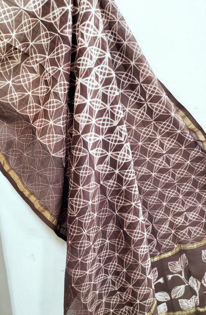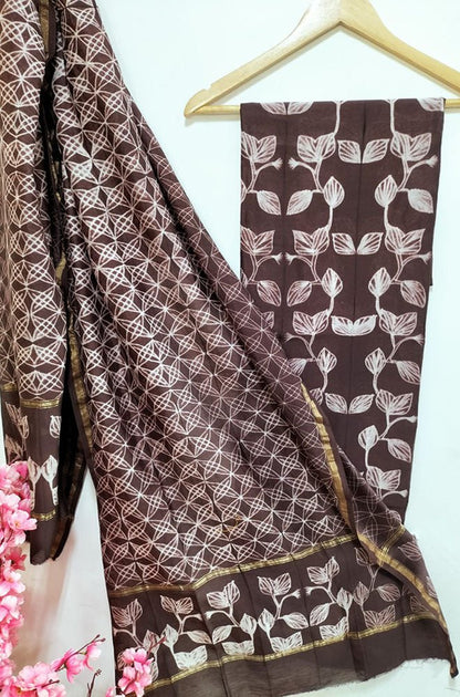 Brown Shibori Cotton Silk Two Piece Unstitched Suit Set