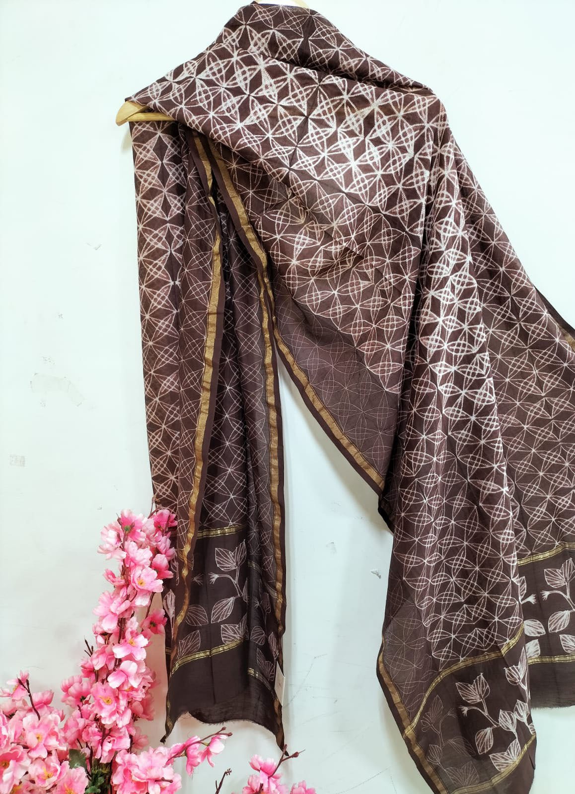 If you are looking for a classic Formal Wear Suit, you cant give a miss to our latest Shibori Cotton Silk Suit Set. Its an ideal wear for your office and a comfort Wear. It comes in 2 piece (we can get a bottom paired with it on request and will be charged extra for it). A lovely geomatric pattern on Kurti with a same color dupatta with a floral design looks very elegant. Shibori is a form of tie and dye in which the fabric is folded, pleated, tied or stitched in different ways to achieve various designs. "Accentuate your look by draping yourself in this Shibori Fabric .Shibori Fabric made with stunning patterns using Shibori-dye technique.