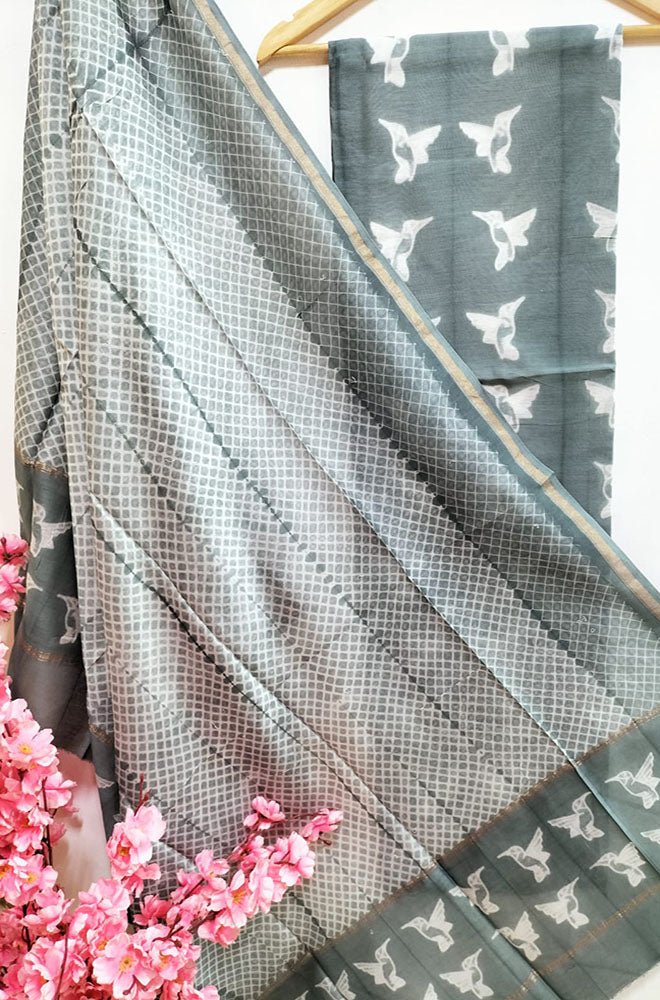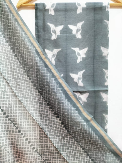 Grey Shibori Cotton Silk Two Piece Unstitched Suit Set