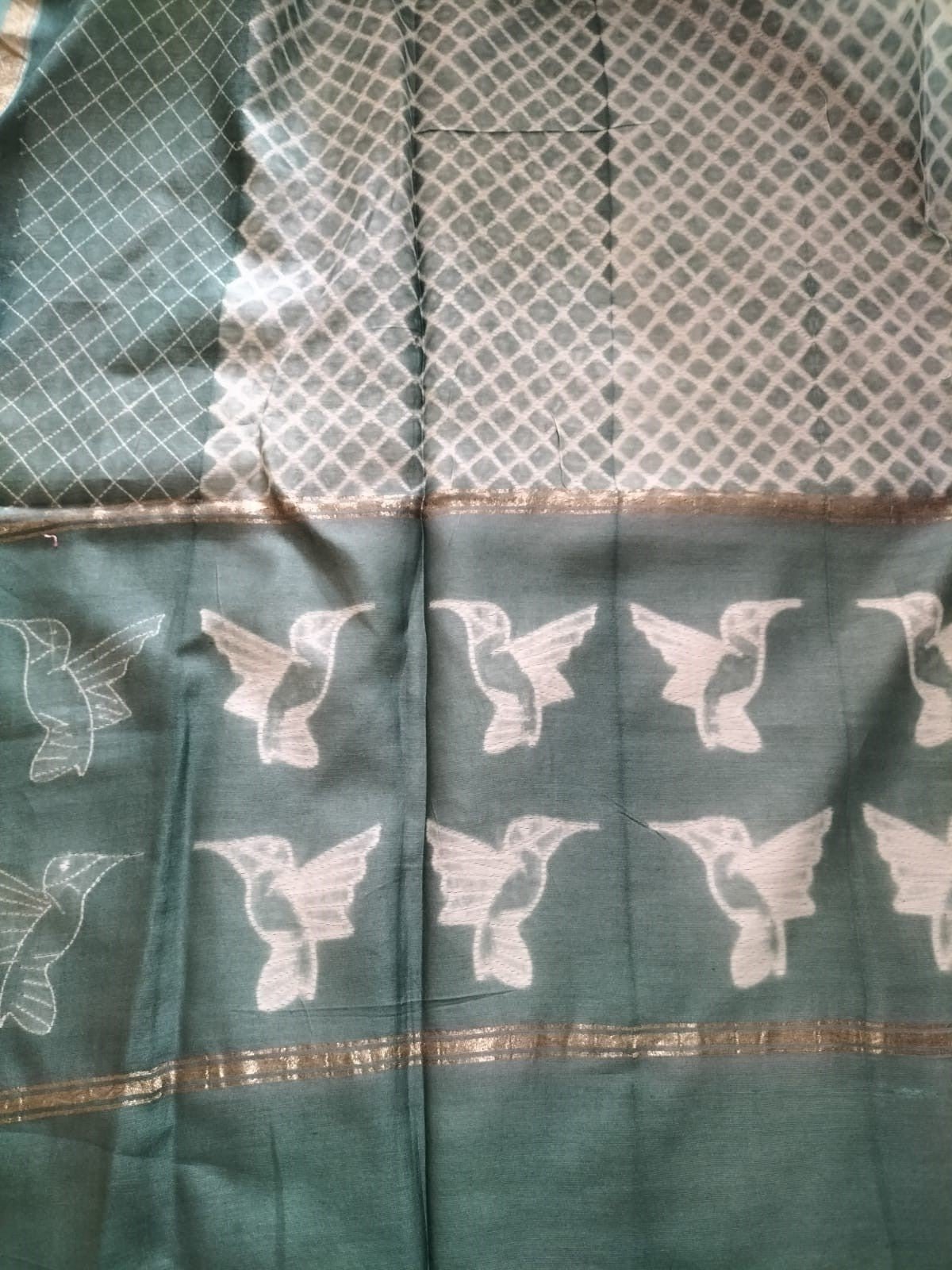 If you are looking for a classic Formal Wear Suit, you cant give a miss to our latest Shibori Cotton Silk Suit Set. Its an ideal wear for your office and a comfort Wear. It comes in 2 piece (we can get a bottom paired with it on request and will be charged extra for it). A lovely geomatric pattern on Kurti with a same color dupatta with a floral design looks very elegant. Shibori is a form of tie and dye in which the fabric is folded, pleated, tied or stitched in different ways to achieve various designs. "Accentuate your look by draping yourself in this Shibori Fabric .Shibori Fabric made with stunning patterns using Shibori-dye technique.