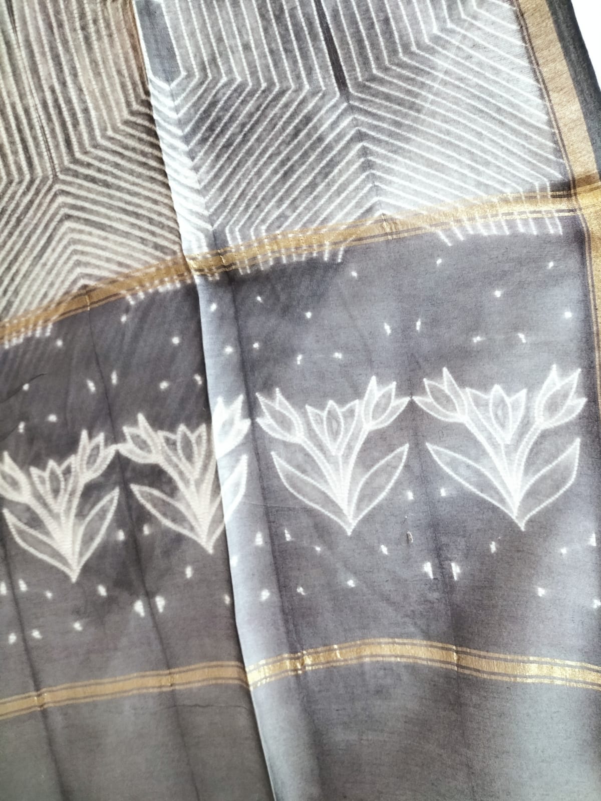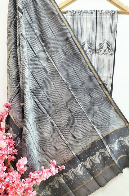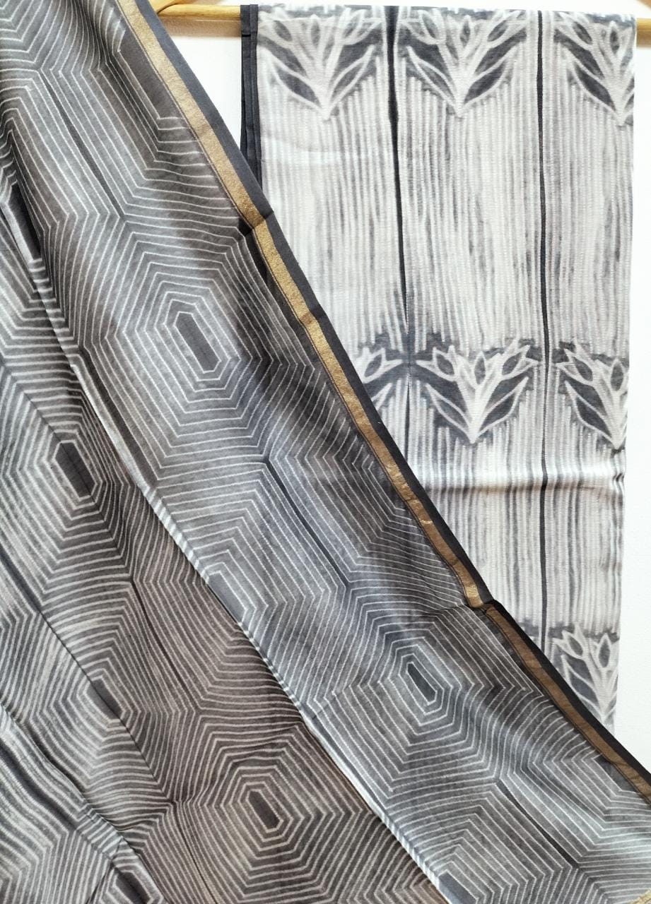 Grey Shibori Cotton Silk Two Piece Unstitched Suit Set