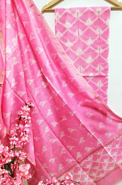 Pink Shibori Cotton Silk Two Piece Unstitched Suit Set