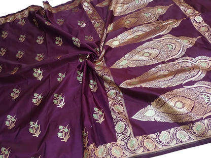 The Purple Banarasi Silk Saree is a stunning piece of traditional Indian attire that exudes elegance and sophistication. Made from luxurious silk fabric, this saree features intricate Banarasi weaving that adds a touch of opulence to its design. The rich purple color of the saree is perfect for special occasions and festivities, making it a must-have in every woman's wardrobe. The saree drapes beautifully and is comfortable to wear, making you feel like a queen wherever you go. Its timeless appeal and exquisite craftsmanship make it a timeless investment piece that you will cherish for years to come.