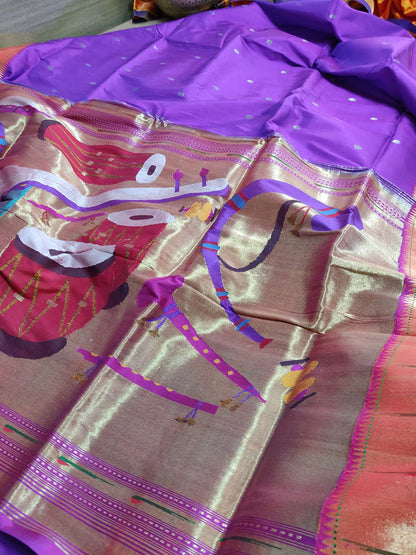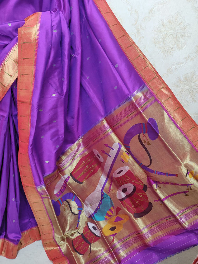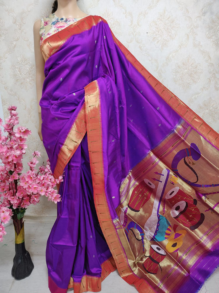 This is a Paithani Pure Silk Saree, which you would love to have it in your wardrobe. This Saree is a perfect occasion wear. Its an exclusive Handloom weaved saree made of Pure Silk and zari . This saree is the result of a painstakingly complex process of weaving & dyeing. (This saree wiil be made on order basis)