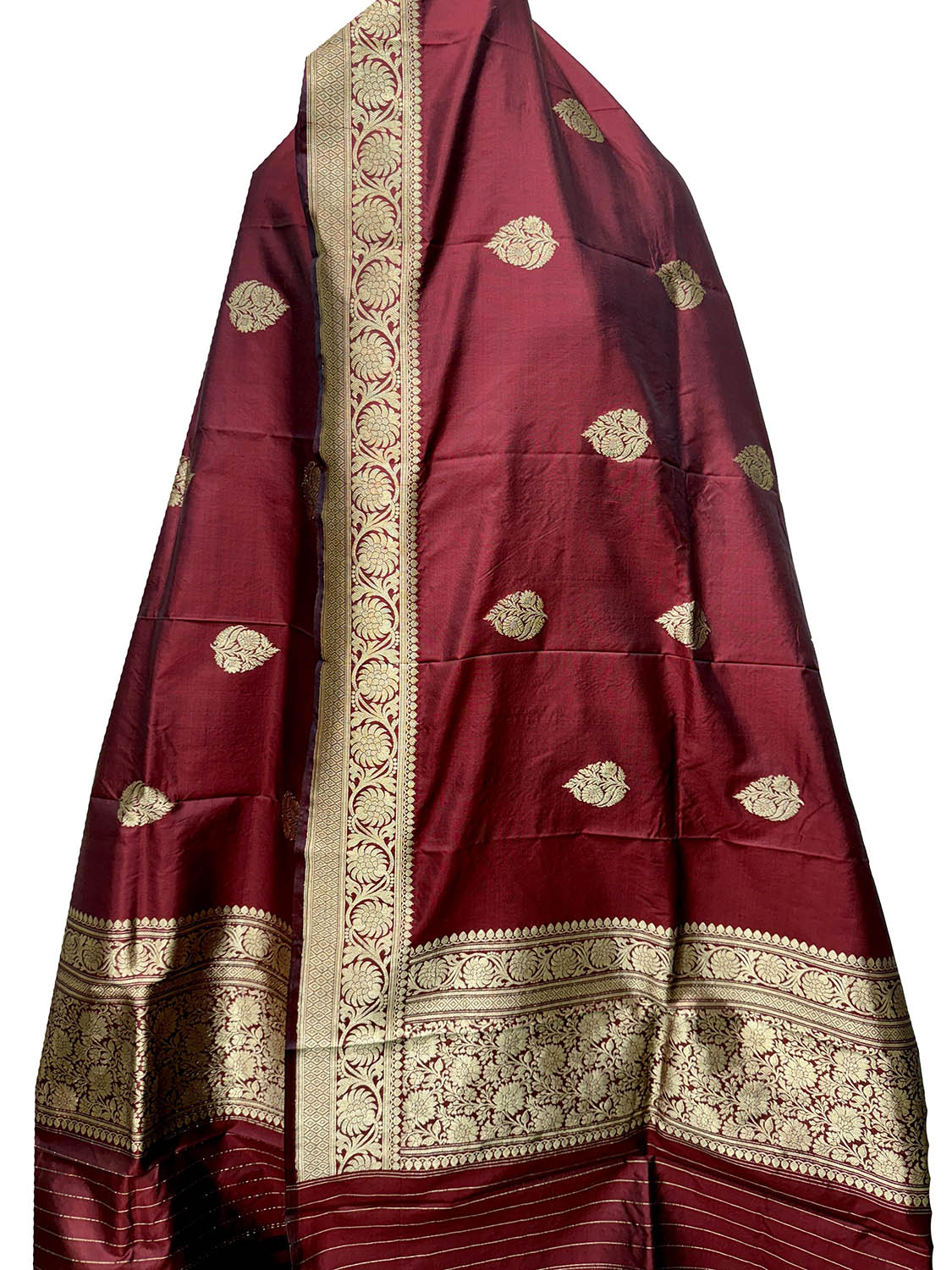 Add a touch of pure elegance and luxury to your outfit with the stunning Maroon Banarasi Silk Dupatta. Crafted with intricate weaving and delicate embroidery, this dupatta exudes sophistication and charm. The rich maroon color adds a regal touch to any ensemble, making it perfect for special occasions or festive celebrations. Made from high-quality silk, this dupatta is not only luxurious but also durable and long-lasting. Elevate your style with this timeless piece that will surely turn heads wherever you go.