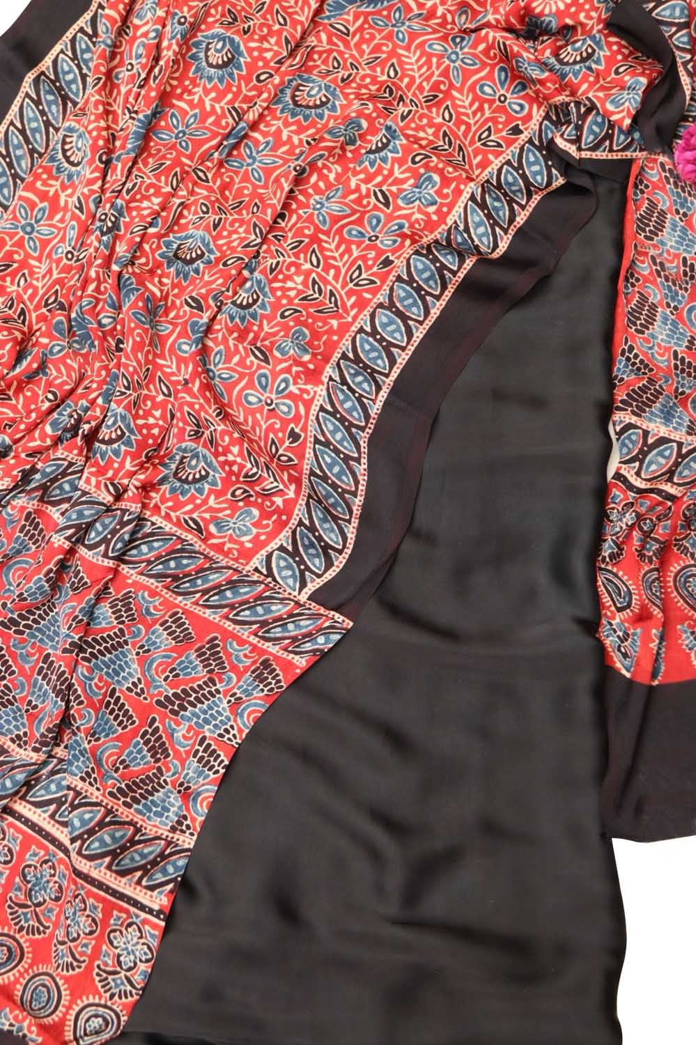 Elevate your ethnic wardrobe with this striking red modal silk suit, crafted for timeless elegance. The luxuriously soft modal fabric drapes beautifully, offering comfort without compromising on style. Paired with an exquisite Ajrakh block-printed dupatta, this ensemble showcases traditional artisanal craftsmanship with contemporary appeal. The intricate geometric patterns of the dupatta add depth and visual interest, making it perfect for festive occasions, celebrations, or refined everyday wear. A sophisticated choice for those who appreciate quality textiles and heritage design.