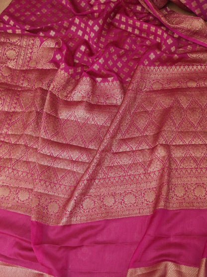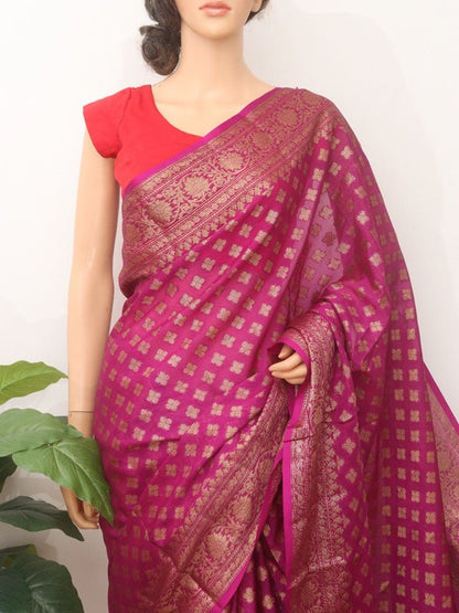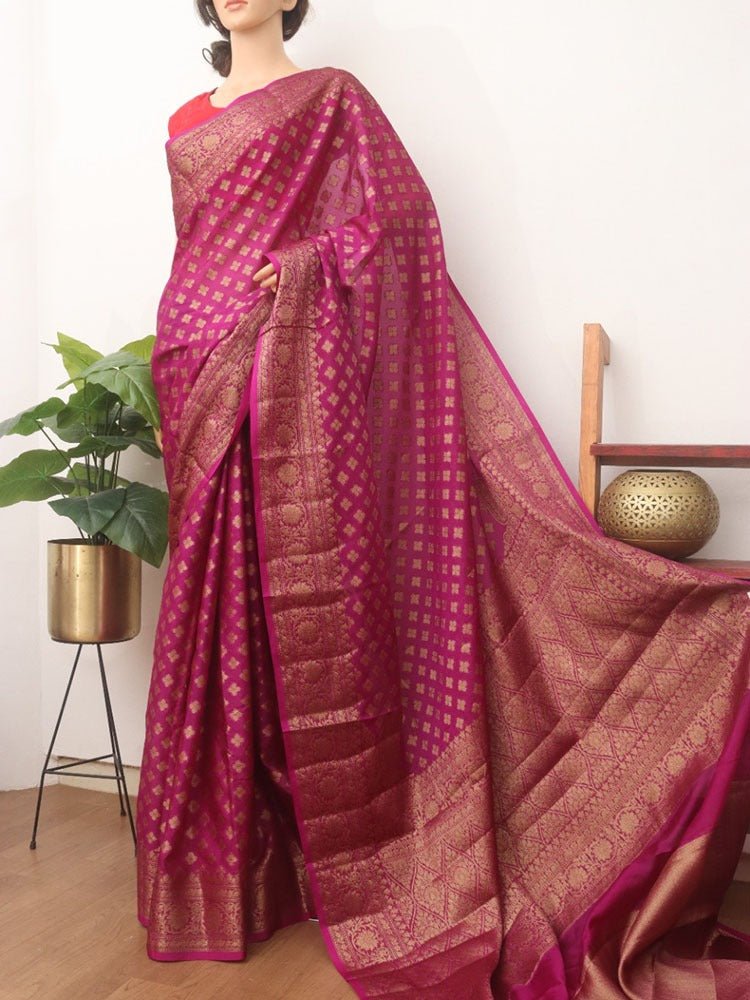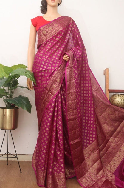 When you think of occasion wear, festive wear, special dressing, you think of dressing, you think of banarasi; such is the flavour and flamboyance of these sarees. Known for their gold and silver zari, fine silk and opulent embroidery, they are heavy sarees with inspired designs. Made in Varanasi, they are characteristsed by intricate intertwining floral and foliate motifs, kalga and bel and a string of upright leaves at the outer edge of border. These sarees in addition to its beauty manages to evoke a feeling of nostalgia for every woman. It reminds one of their mothers, aunt and grandmothers donned in banarasis on very special occasions. Managing to garner appreciation since so many generations and being favourite till today is an exceptional feat by the artisans and Banarsai saree. Come; let us renew our special bond with these sarees only from the treasure trove of Banarasi saree at Luxurion World.